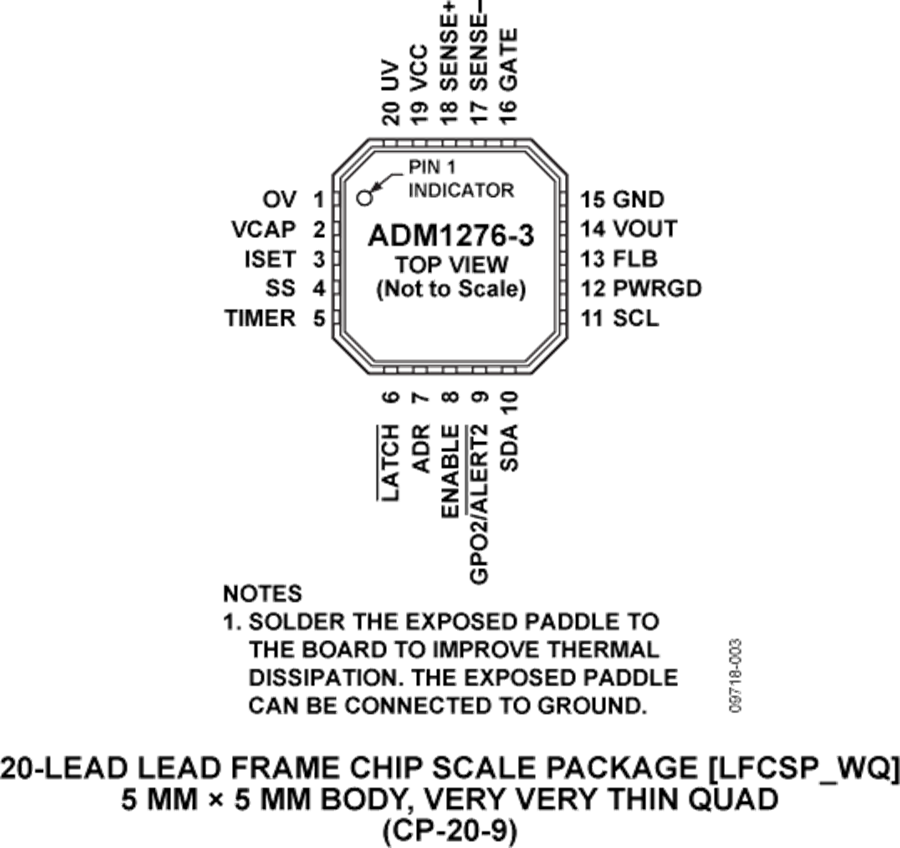 ADM1276采用20引腳LFCSP封裝,并具有一個(gè)LATCH引腳,該引腳可配置為在發(fā)生過流故障時(shí)自動(dòng)重試或鎖定。
