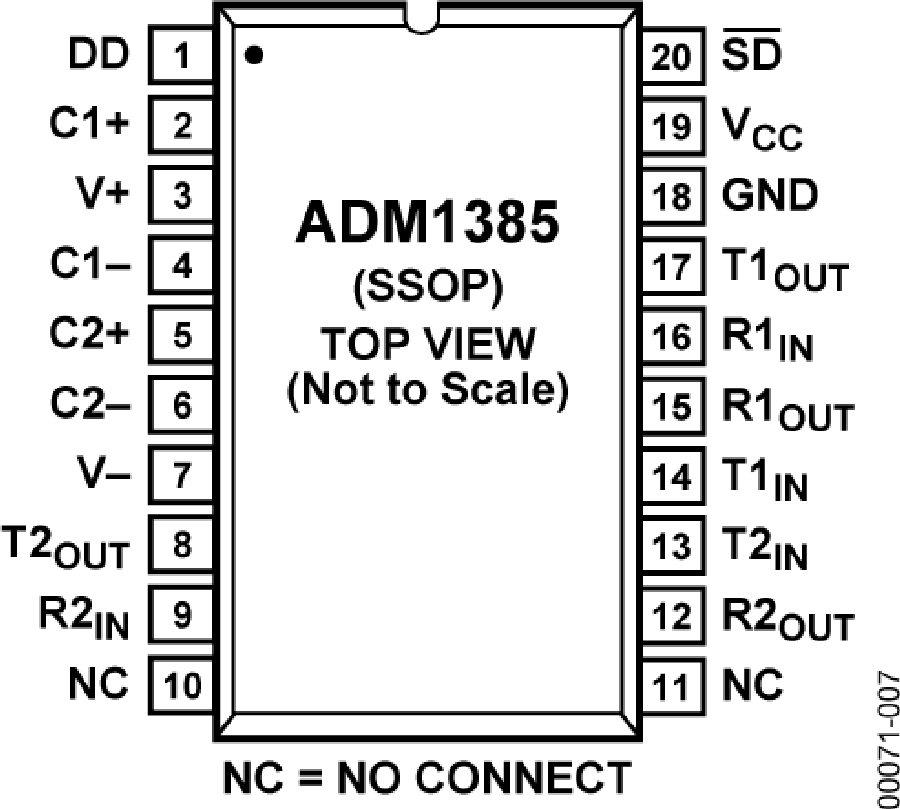 ADM3202提供16引腳DIP、窄體和寬體SO以及節(jié)省空間的TSSOP封裝。ADM3222提供18引腳DIP、SO和20引腳SSOP、TSSOP封裝。ADM1385提供20引腳SSOP封裝,且與LTC1385 CG引腳兼容。