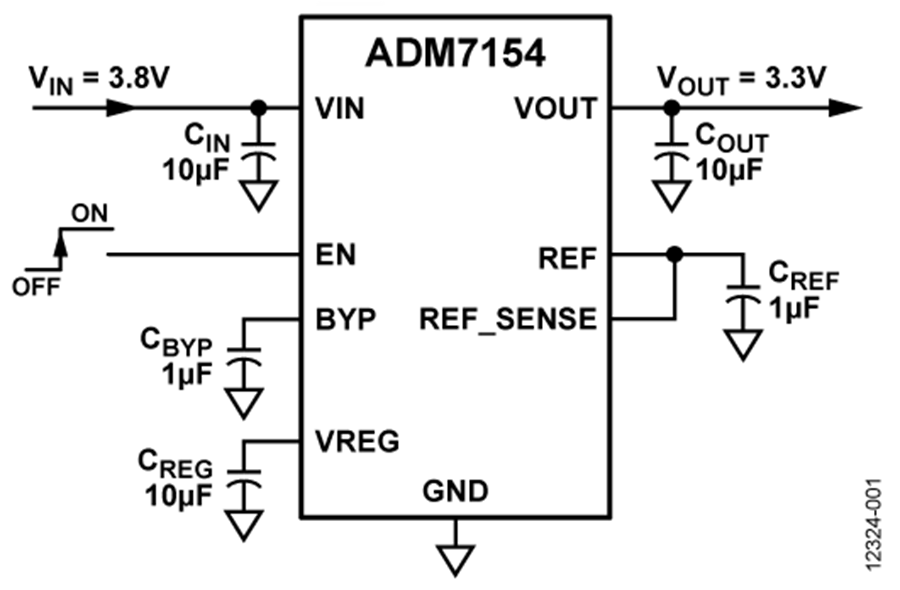 ADM7154是一款線性穩(wěn)壓器,采用2.3 V至5.5 V電源供電,最大輸出電流為600 mA。 該器件采用先進的專有架構(gòu),提供高電源抑制和超低噪聲特性,僅需一個10 μF陶瓷輸出電容,便可實現(xiàn)出色的線路與負載瞬態(tài)響應(yīng)性能。