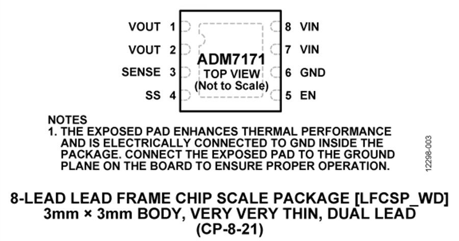 ADM7171穩(wěn)壓器輸出噪聲電壓為5 μV rms,并且不受輸出電壓影響。 ADM7171提供8引腳、3 mm × 3 mm LFCSP封裝,不僅非常緊湊,而且具有出色的散熱性能,適合要求最大1 A輸出電流的薄型、小尺寸應(yīng)用。