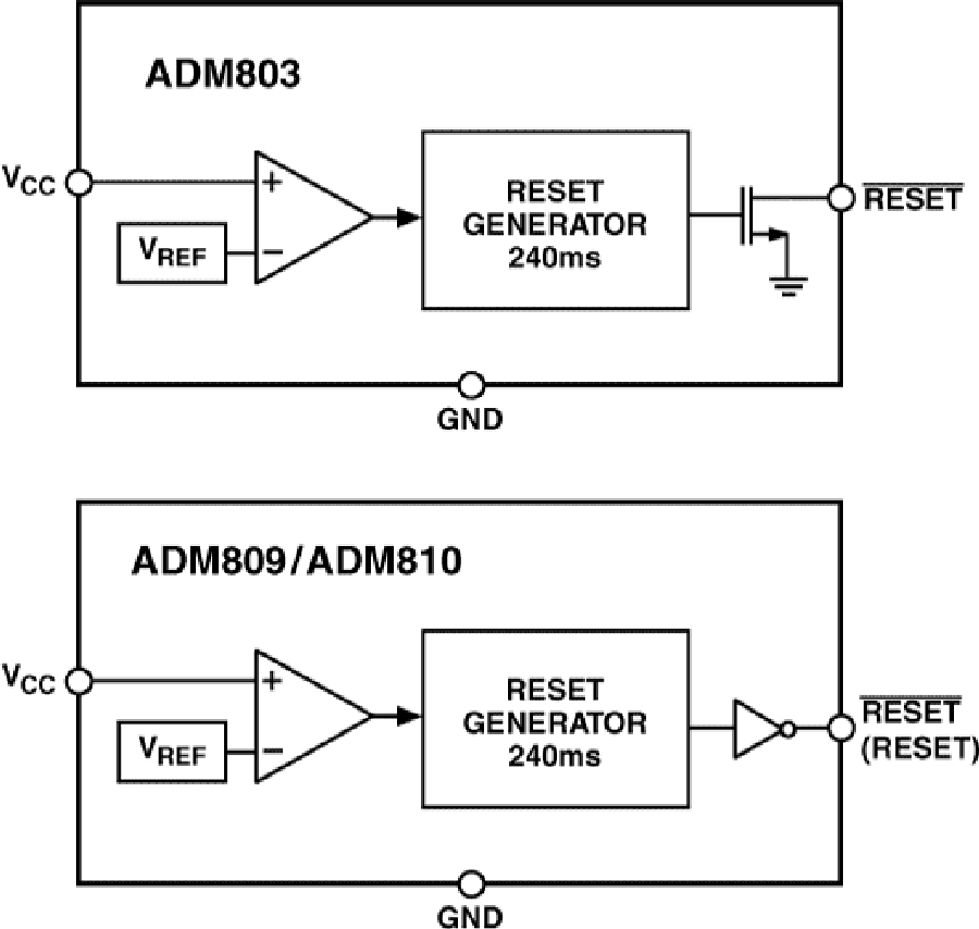 ADM803采用3引腳SC70封裝,功耗僅17μA,適合低功耗便攜式設(shè)備使用。