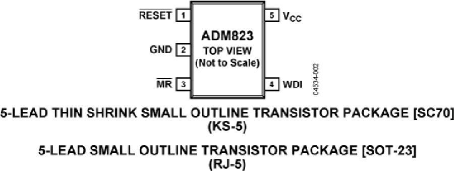ADM823/ADM824/ADM825提供5引腳SC70和SOT-23兩種封裝,典型功耗僅5 μA,適合低功耗便攜式應(yīng)用。