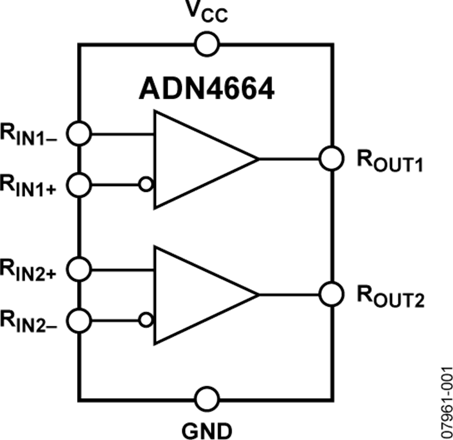 ADN4664是一款雙通道、CMOS、低壓差分信號(hào)(LVDS)線路接收器,提供400 Mbps (200 MHz)以上的數(shù)據(jù)速率,功耗超低。它采用直通式引腳排列,便于PCB布局以及輸入與輸出信號(hào)分離。該器件接受低壓(典型值310 mV)差分輸入信號(hào),并將其轉(zhuǎn)換為單端3 V TTL/ CMOS邏輯電平。??????????????ADN4664及其配套LVDS驅(qū)動(dòng)器ADN4663為高速點(diǎn)對點(diǎn)數(shù)據(jù)傳輸提供一種新的解決方案,可以代替射極耦合邏輯(ECL)或正射極耦合邏輯(PECL),功耗則更低。??????????應(yīng)用