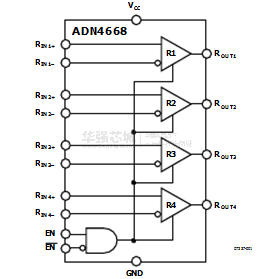 ADI ADN4667 3 V LVDS Quad CMOS Differential Line Driver The ADN4667 is a quad, CMOS, Low Voltage Differential Signaling (LVDS) line driver offering data rates of over 400 Mbps (200 MHz) and ultr