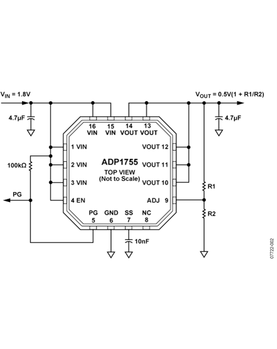 具有軟啟動特性,提供可調(diào)輸出電壓選項:0.75 V至3.0 V (ADP1755)
