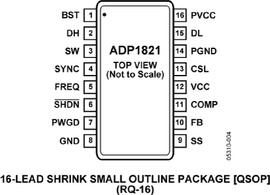 ADP1821的工作溫度范圍為–40°C至+125°C結(jié)點溫度范圍,采用16引腳QSOP封裝。