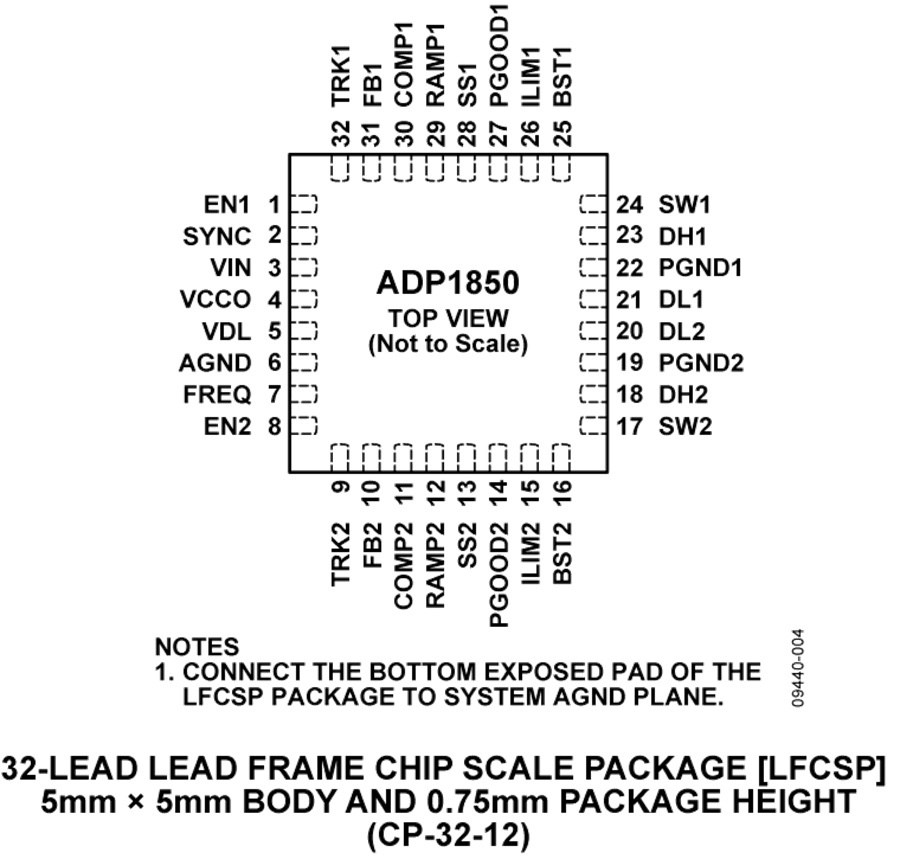 ADP1850是一款DC/DC同步降壓控制器,可配置為雙路輸出或兩相單路輸出,能夠采用常用的3.3 V至12 V(最高可達(dá)20 V)電壓輸入工作。它以電流模式工作,瞬態(tài)響應(yīng)性能得以提高,此外它還利用谷值電流檢測(cè)來增強(qiáng)抗擾能力。