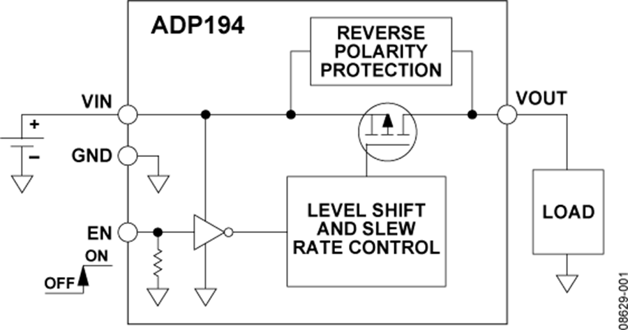 ADP194是一款高端負(fù)載開(kāi)關(guān),采用1.1 V至3.6 V電源供電,可防止電流反向從輸出端流向輸入端。該負(fù)載開(kāi)關(guān)可提供電源域隔離,有助于延長(zhǎng)供電電池的使用壽命。該器件內(nèi)置一個(gè)低導(dǎo)通電阻P溝道MOSFET,支持500 mA以上的連續(xù)負(fù)載電流,功率損耗極小。ADP194具有最大2 μA的低地電流和超低關(guān)斷電流,因此非常適合電池供電的便攜式設(shè)備使用。ADP194的使能邏輯輸入端內(nèi)置電平轉(zhuǎn)換器,與現(xiàn)代處理器和GPIO控制器兼容。ADP194不但擁有出色的工作性能,而且占用的印刷電路板(PCB)空間極小,面積不到0.64 mm2,高度僅0.50 mm,采用4引腳、0.8 mm x 0.8 mm、0.4 mm間距、超小型WLCSP封裝。