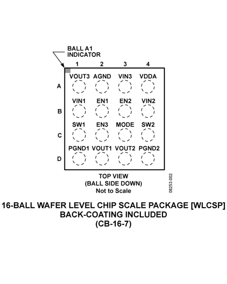 2 mm × 2 mm、16引腳小型WLCSP封裝