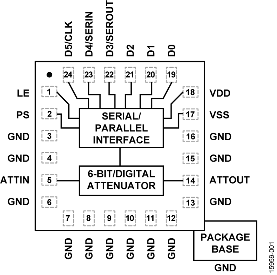 ADRF5720 是雙向的,射頻 (RF) 輸入和輸出內(nèi)部可匹配至 50 Ω。它采用符合 RoHS 的 4 mm × 4 mm 24 引腳岸面柵格陣列 (LGA) 封裝。