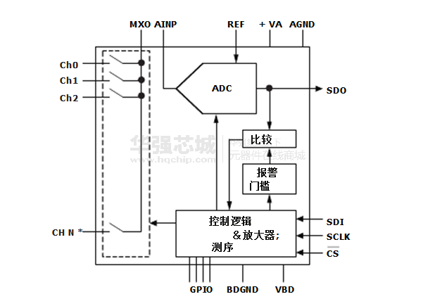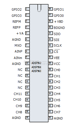 該ADS79XX是12 /10/ 8位多聲道模擬 - 數(shù)字轉(zhuǎn)換器的家庭。下面的表顯示了該產(chǎn)品系列的所有12設(shè)備。該設(shè)備包括基于SAR A / D電容器轉(zhuǎn)換器固有的采樣和保持。該器件接受廣泛的模擬電源電壓范圍從2.7V至5.25V 。極低的功耗使這些器件適用于電池供電,隔離電源的應(yīng)用。寬1.7V至5.25VI / O電源電壓范圍方便了以最常用的膠式接口CMOS數(shù)字主機(jī)。串行接口是由CS和SCLK用于控制與微處理器和DSP輕松連接。所述輸入信號進(jìn)行取樣以下降沿CS 。它使用SCLK用于轉(zhuǎn)換,串行數(shù)據(jù)輸出端,和閱讀中的串行數(shù)據(jù)。該器件允許自動預(yù)選頻道或手動測序選擇下一個(gè)轉(zhuǎn)換周期的通道中。有兩種軟件可選的輸入范圍( 0V -2.5V和0V - 5V ),四個(gè)獨(dú)立配置的GPIO以及每兩個(gè)可編程的報(bào)警閾值通道。這些特性使器件適用對于大多數(shù)數(shù)據(jù)采集應(yīng)用。