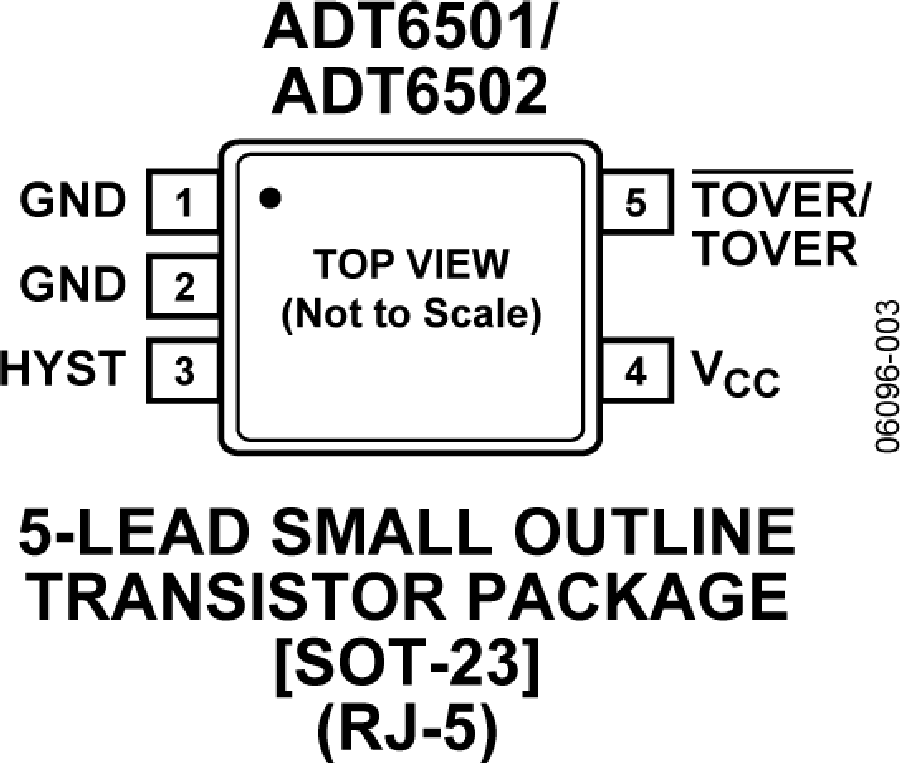 ADT6501和ADT6502僅限監(jiān)控+35°C至+115°C范圍內(nèi)的溫度。因此,當(dāng)溫度超過所選跳變點溫度時,邏輯輸出引腳變成有效狀態(tài)。