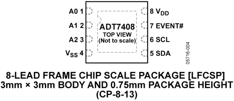 ADT7408的額定工作電壓范圍為3.0 V至3.6 V,工作電壓為3.3 V時(shí),平均電源電流的典型值低于240 μA。 ADT7408提供關(guān)斷模式來(lái)實(shí)現(xiàn)器件斷電,關(guān)斷電流典型值為3 μA。 ADT7408的額定工作溫度范圍為-20°C至+125°C。 ADT7408采用無(wú)鉛8引腳LFCSP 3mm x 3mm (JEDEC MO- 229 VEED-4)封裝。