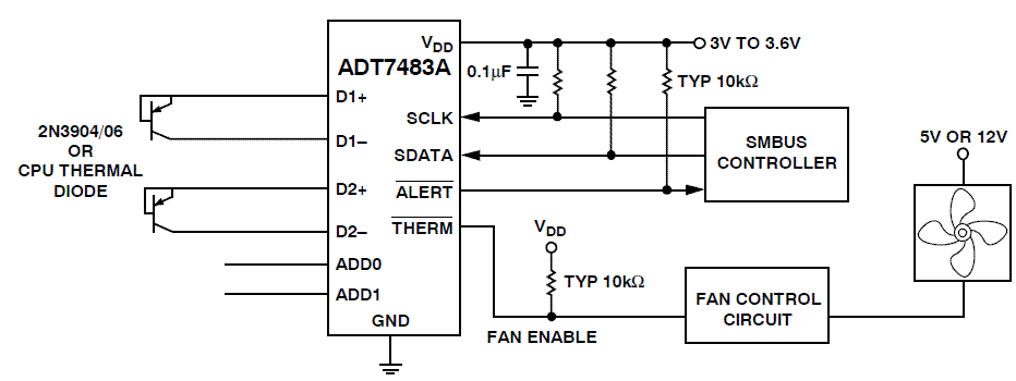 | ADT7483AARQZ-RL | ON | ADT7483A 是一款 3 溝道數(shù)字溫度計(jì)和溫度過低/過高報(bào)警器,用于 PC 和熱管理系統(tǒng)。它可以測(cè)量兩個(gè)位置的溫度,例如 CPU 或 GPU 中的遠(yuǎn)程熱二極管,或者聯(lián)接晶體管的分立二極管。它還可以測(cè)量其環(huán)境溫度。 | 立即購買 |