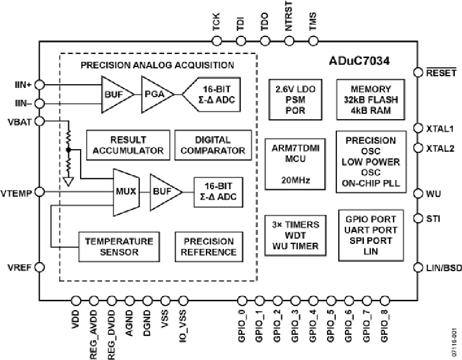 ADuC7034是一款適合在12 V汽車電子應(yīng)用中進(jìn)行電池監(jiān)控的完整系統(tǒng)解決方案,集成了所有在各種工作條件下對(duì)12 V電池參數(shù)(如電池電流、電壓和溫度)進(jìn)行精確智能監(jiān)控、處理和診斷等必需的功能。
