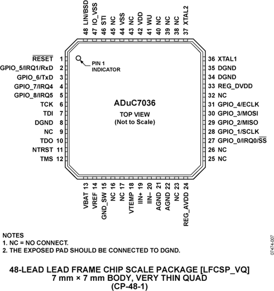 PACKAGE AND TEMPERATURE RANGE48引腳、7 mm × 7 mm LFCSP封裝