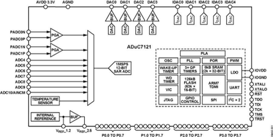ADuC7124/ADuC7126均為完全集成的1 MSPS、12位數(shù)據(jù)采集系統(tǒng),在單芯片內(nèi)集成高性能多通道ADC、16位/32位MCU和Flash/EE存儲(chǔ)器。ADC具有多達(dá)12路單端輸入。另外還有4個(gè)ADC輸入通道也可以和4個(gè)DAC的輸出引腳復(fù)用。ADC可以在單端模式或差分輸...
