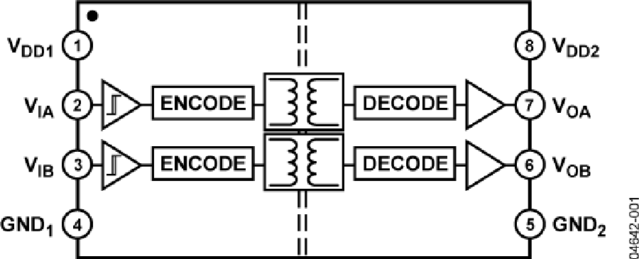 iCoupler 器件不用LED和光電二極管,因而不存在一般與光耦合器相關(guān)的設(shè)計(jì)困難。 簡單的iCoupler數(shù)字接口和穩(wěn)定的性能特征,可消除光耦合器通常具有的電流傳輸比不確定、非線性傳遞函數(shù)以及溫度和使用壽命影響等問題。 這些iCoupler產(chǎn)品不需要外部驅(qū)動(dòng)器和其它分立器件。 此外,在信號(hào)數(shù)據(jù)速率相當(dāng)?shù)那闆r下,iCoupler器件的功耗只有光耦合器的1/10至1/6。