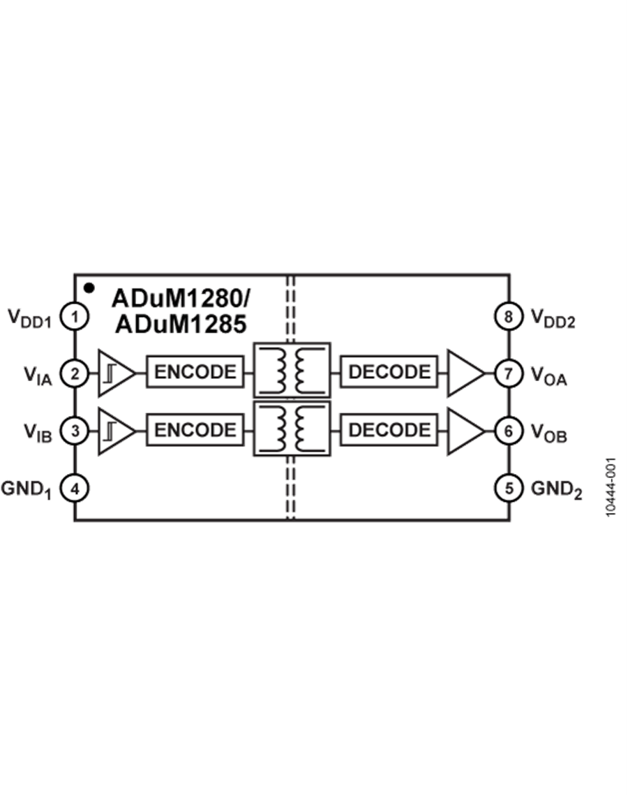 ADuM1280/ADuM1281/ADuM1285/ADuM1286均為采用ADI公司iCoupler?技術(shù)的雙通道數(shù)字隔離器。這些隔離器件將高速CMOS與單芯片空芯變壓器技術(shù)融為一體,具有優(yōu)于光耦合器件和其它集成式耦合器等替代器件的出色性能特征。