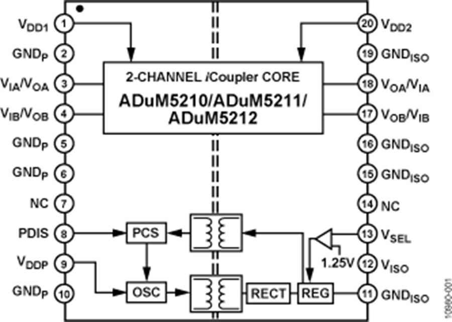 ADuM1510 基于ADI公司iCouple技術(shù)的單向、五通道數(shù)位隔離器 ADuM1510是一款基于ADI公司iCouple®技術(shù)的單向、五通道數(shù)位隔離器。這些隔離