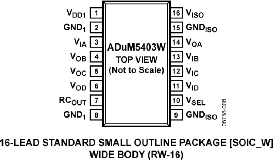 16引腳SOIC封裝,爬電距離大于8.0 mm