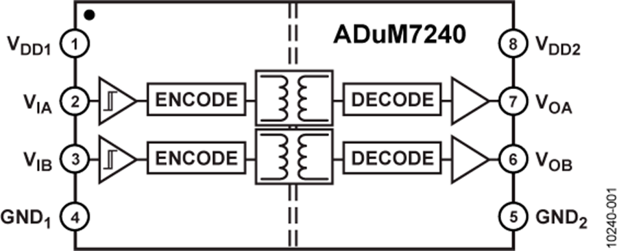 ADuM7240/[ADuM7241]是采用ADI公司的*i*Coupler ^?^ 技術(shù)的雙通道數(shù)字隔離器。這些隔離器件結(jié)合了高速CMOS與單片空芯變壓器技術(shù),可提供出色的性能特性,優(yōu)于光耦器件