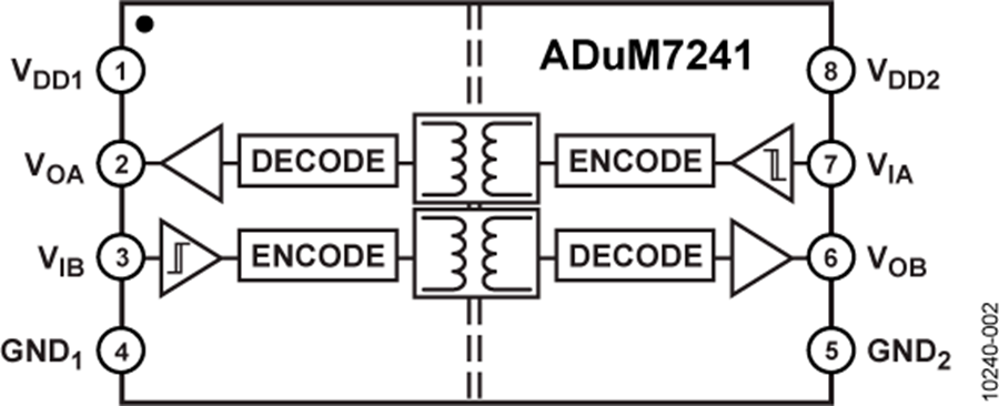 ADuM724x系列雙通道1 kV數(shù)字隔離器件采用窄體8引腳SOIC封裝。與2.5 kV或5 kV隔離器相比,ADuM724x提供了一種經(jīng)濟(jì)選項(xiàng),適用于僅需基本隔離功能的應(yīng)用場(chǎng)合。