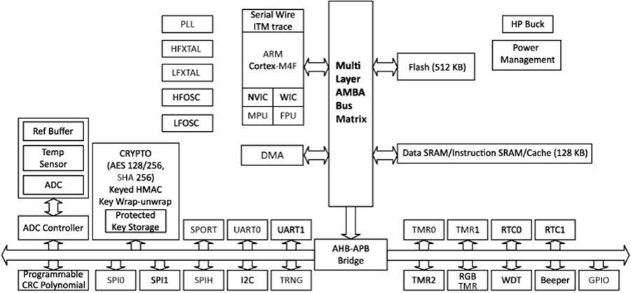帶密鑰包裝-解包的保護密鑰存儲帶密鑰解包的鍵控HMAC串行端口(SPORT)、串行外設接口(SPI)、內部集成(I2C)和通用異步接收器/發(fā)射器(UART)外設接口