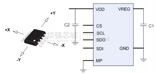 該IC接口使用BCD工藝,允許高層次的集成制造。該設(shè)備是工廠修剪,以更好地調(diào)整的特點(diǎn),傳感元件的加速度信息提供。