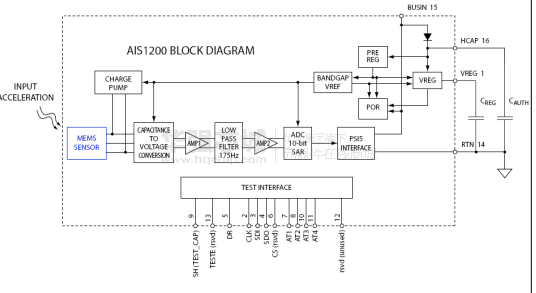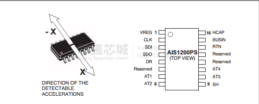 該傳感器是與周邊ais1200ps單軸加速度傳感元件和IC的接口能夠提供加速度信息到主控制單元通過曼徹斯特編碼協(xié)議(125 kbps的)。