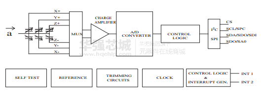該裝置可用于產(chǎn)生慣性喚醒/自由落體事件以及設(shè)備本身的位置信號(hào)中斷。中斷發(fā)生器的閾值和時(shí)間是可編程的終端用戶的飛行。