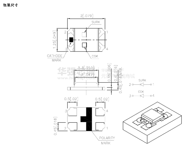 2.0mmx1.25mm SMT LED , 0.45毫米MAX 。厚度。