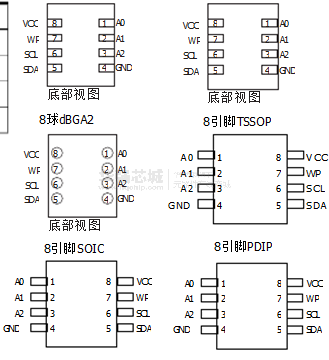 該AT24C32C / 64C是在節(jié)省空間的8引腳PDIP , 8引腳SOIC JEDEC , 8引腳超導線架可用柵格陣列( ULA ) , 8引腳TSSOP , 8引腳超薄迷你地圖( MLP2x3 )和8球dBGA2包,并通過2線串行接口訪問。