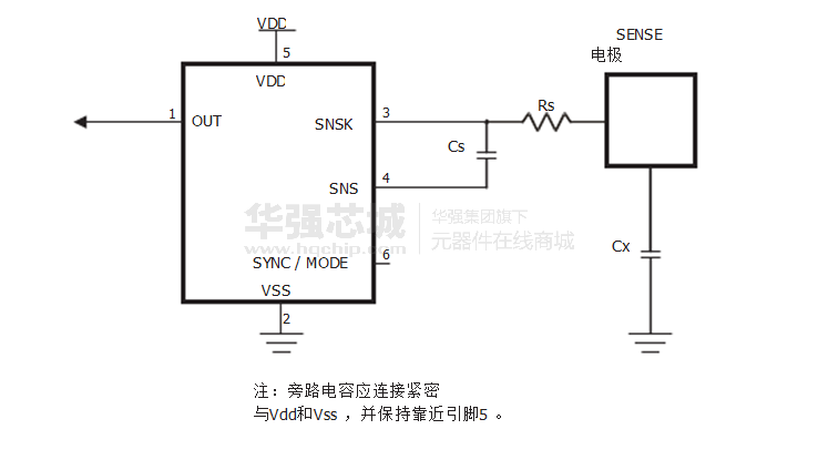 按鍵的靈敏度:通過電容可設(shè)置(CS )