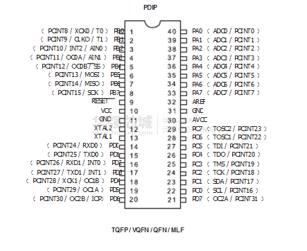 ATMEGA164A-AU 引腳圖