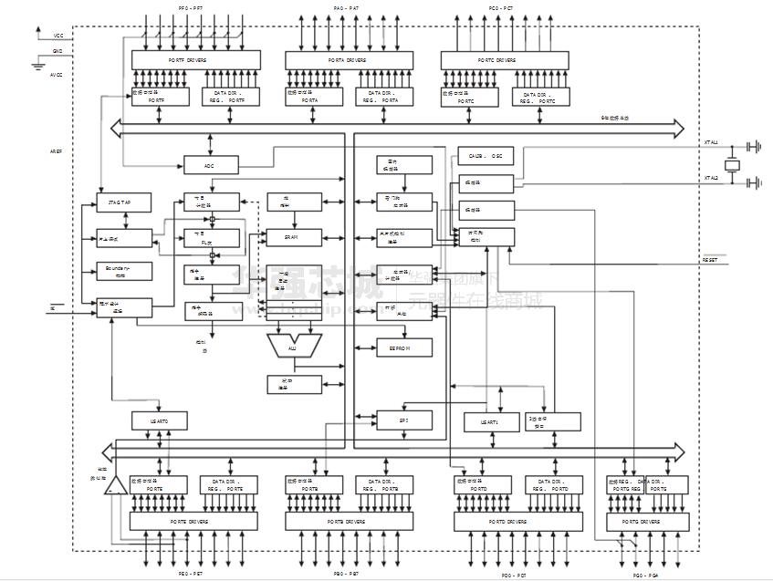 - 六個(gè)睡眠模式:空閑模式, ADC噪聲抑制,省電,掉電,待機(jī)