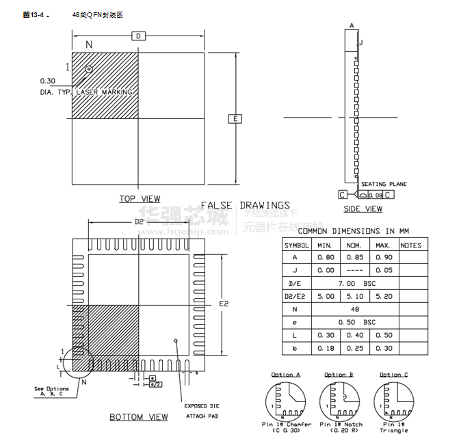 - 48引腳LQFP封裝, 7 ×7毫米,間距達到0.5mm / 48 - QFN焊盤7×7毫米,間距0.5毫米