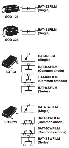 在bat46系列二極管耐壓高,小信號肖特基二極管用于保護和路由操作。