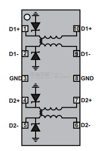 這個裝置是一個高度集成的共模濾波器設(shè)計抑制EMI / RFI共模噪聲對高速差分串行總線,如HDMI全高清,MIPI,顯示端口和其他高速串行接口的設(shè)備有非常大的差分帶寬符合這些標準。該設(shè)備可以保護和過濾2個差分通道。
