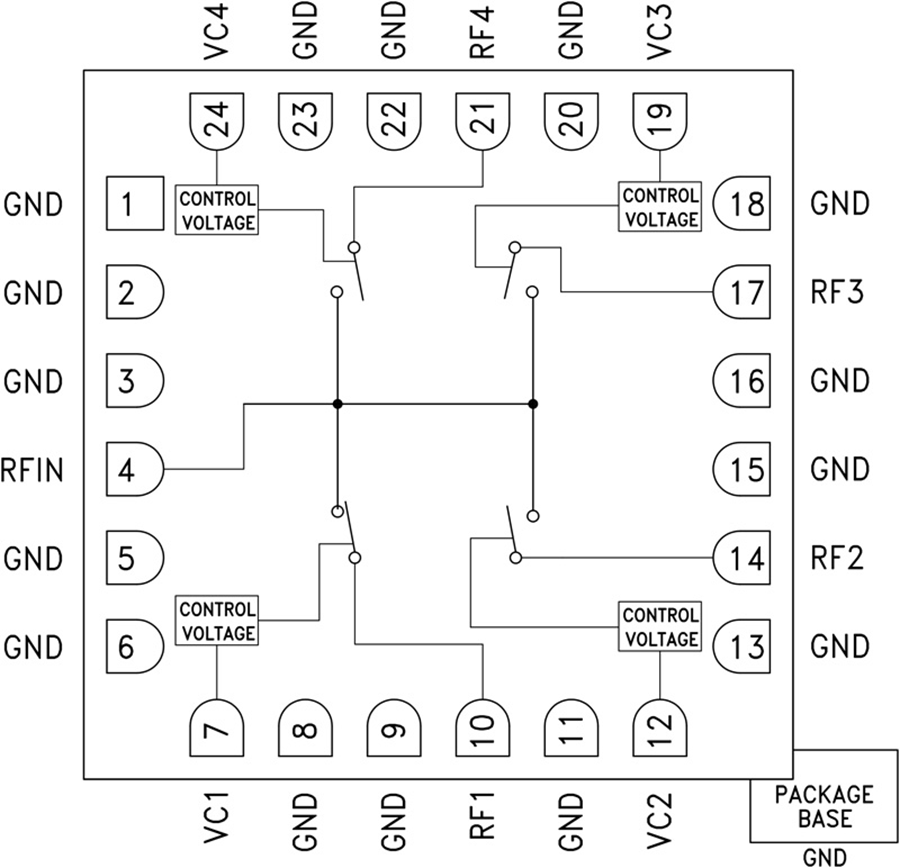 HMC1084是一款寬帶反射GaAs MESFET SP4T開關(guān),采用緊湊型4x4 mm陶瓷封裝。 該開關(guān)頻率范圍為23 - 30 GHz,具有高隔離度和低插入損耗。 HMC1084由0/-3V邏輯控制,具有快速開關(guān)速度,且直流功耗比基于pin二極管的解決方案小。 HMC1084采用緊湊型外形尺寸,非常適合微波無線電、SATCOM以及傳感器應(yīng)用。 HMC1084采用無鉛4x4 mm SMT封裝,兼容表面貼裝制造技術(shù)。