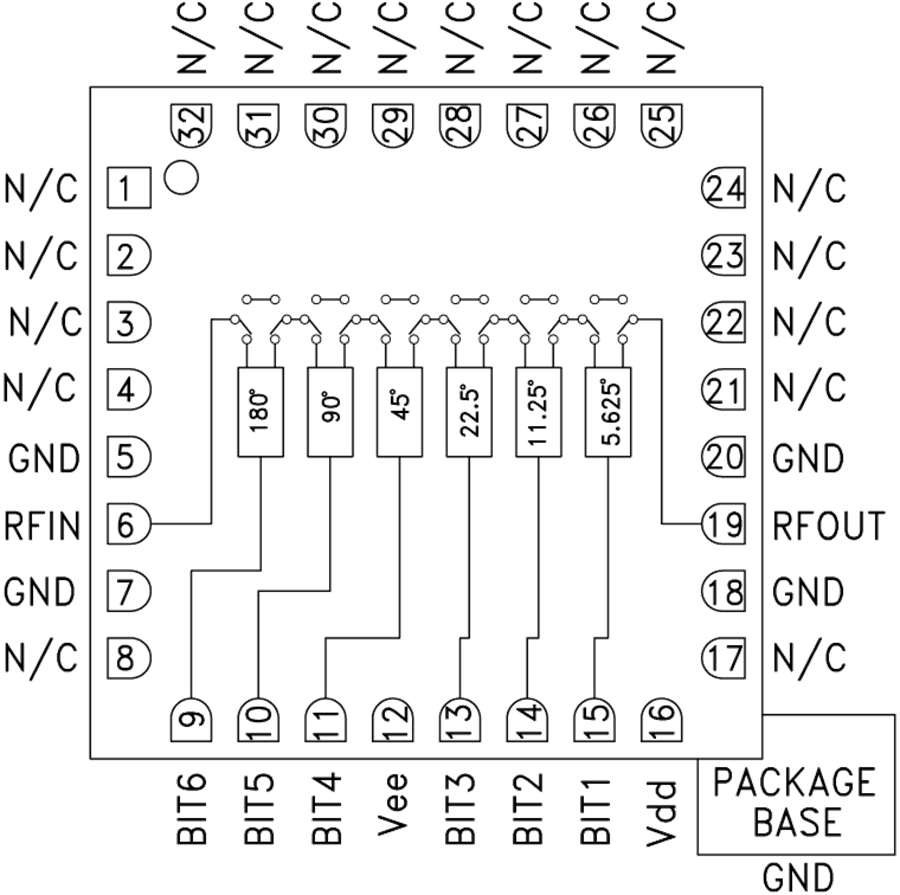 HMC642A是一款6位數(shù)字移相器芯片,額定頻率范圍為9 GHz至12.5 GHz,提供360度相位覆蓋,LSB為5.625度。 HMC642A在所有相態(tài)具有2.5度至3.5度的極低RMS相位誤差及±0.25 dB至±0.4 dB的極低插入損耗變化。 此款高精度移相器通過0/5 V的正控制邏輯控制。HMC642A采用緊湊型5 mm x 5 mm無引腳SMT陶瓷封裝,內(nèi)部匹配50 Ω,無需任何外部元件。