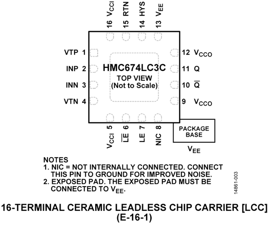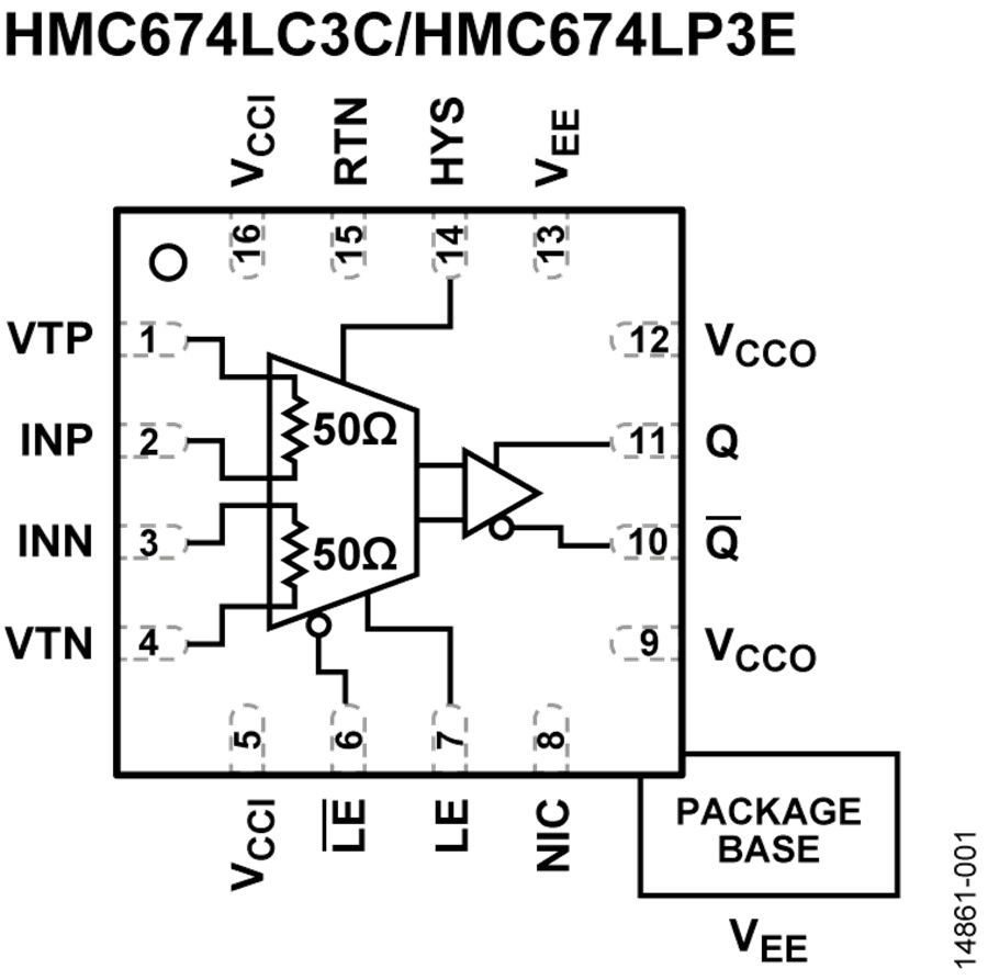 小擺幅PECL輸出級旨在將400 mV直接驅(qū)動至端接于+1.3V的50 ?負載,同時保持與其它PECL邏輯系列兼容。 HMC674LC3C具有高速鎖存和可編程遲滯,可配置為鎖存工作模式或跟蹤比較器。
