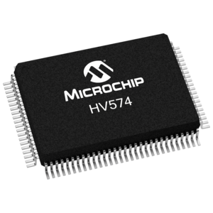 The HV574 is a low-voltage serial to high-voltage parallel con-verter with push-pull outputs. This device has been designed for use as a driver for printer applications. It can also be used in any application requiring multiple output high-voltage current sour-cing and sinking capability such as driving plasma panels, vacuum fluorescent displays, or large matrix LCD displays.The device has 4 parallel 20-bit dynamic shift registers, permitting data rates 4X the speed of one (they are clocked together). There are 80 static latches and control logic to perform the polarity select and blanking of the outputs. HVOUT1 is connected to the first stage of the first shift register through the polarity and blanking logic. Data is shifted through the shift registers on the logic low to high transition of the clock. The DIR pin causes CCW shifting when connected to GND, and CW shifting when connected to VDD. A data output buffer is provided for cascading devices. This output reflects the current status of the last bit of the shift register (HVOUT80). Operation of the shift register is not affected by the LE (latch enable), BL (blanking), or the POL (polarity) inputs. Transfer of data from the shift registers to the latches occurs when the LE (latch enable) input is high. The data in the latches is stored when LE is low.