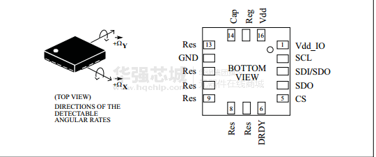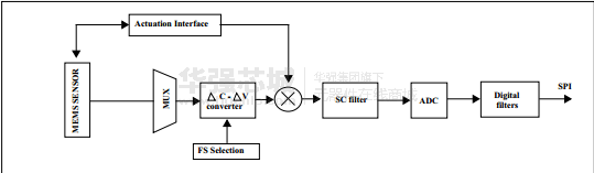 它包括一個傳感元件和一個能通過一個SPI數(shù)字接口到外部世界提供測量的角速率接口。