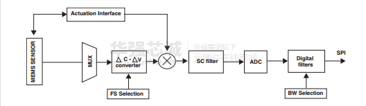 它包括一個(gè)傳感元件和一個(gè)能通過一個(gè)SPI數(shù)字接口到外部世界提供測量的角速率接口。