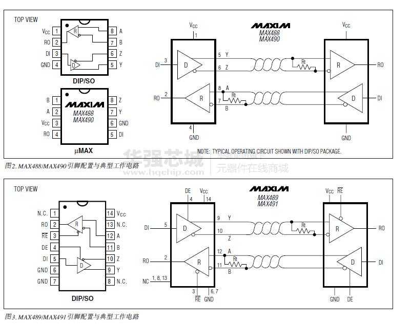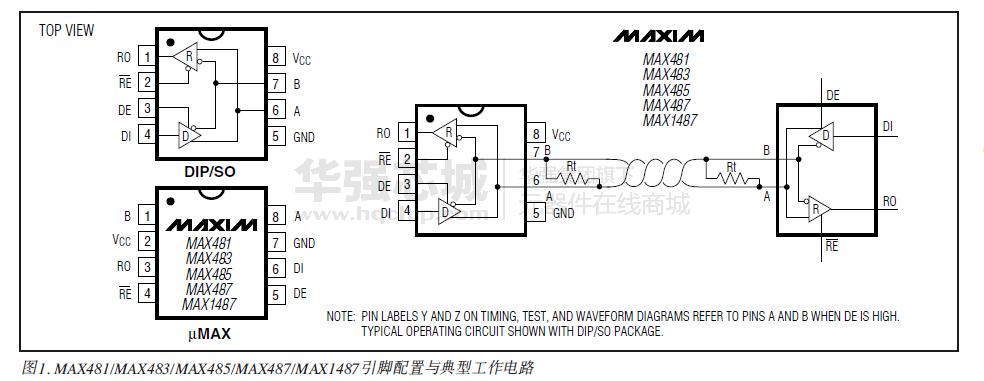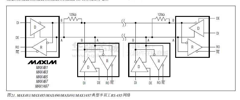MAX481、MAX483、MAX485、MAX487-MAX491以及MAX1487是用于RS-485與RS-422通信的低功耗收發(fā)器,