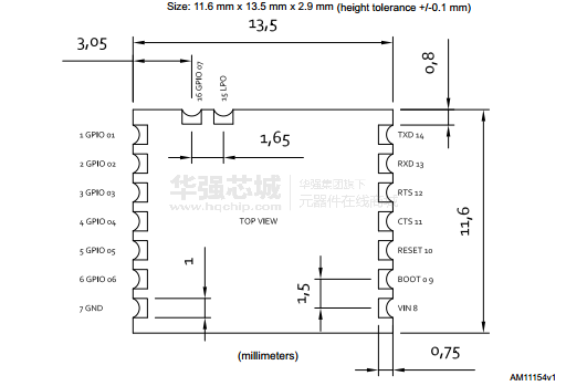 微尺寸形狀因子:11.6×13.5×2.9毫米
