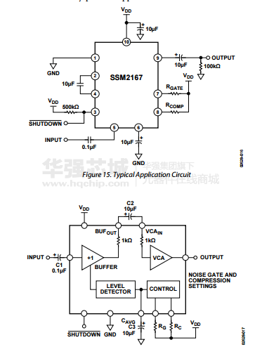 SSM2167是一款完整、靈活的解決方案,用于調(diào)理個人電子設(shè)備和計算機音頻系統(tǒng)中的麥克風(fēng)輸入。在改善通信和公共廣播系統(tǒng)的聲音清晰度方面,它同樣表現(xiàn)出色。增益由一個低噪聲、電壓控制放大器(VCA)提供,并可通過控制環(huán)路進行動態(tài)調(diào)整,以維持設(shè)定的壓縮特性。壓縮比由單個電阻設(shè)置,可相對于固定旋轉(zhuǎn)點在1:1至10:1以上的范圍內(nèi)變化;高于旋轉(zhuǎn)點的信號會受到限制,以防止過載并消除爆音。向下擴展器(噪聲門)可防止放大背景噪聲或“嗡嗡”聲,從而在數(shù)字化處理之前獲得最佳信號電平,這樣數(shù)字域中便無需額外增益或衰減處理。SSM2167具有靈活設(shè)置壓縮比及電平檢測器的時間常數(shù)特性,并且提供兩個值的旋轉(zhuǎn)點,因而很容易集成于各種麥克風(fēng)調(diào)理應(yīng)用中。