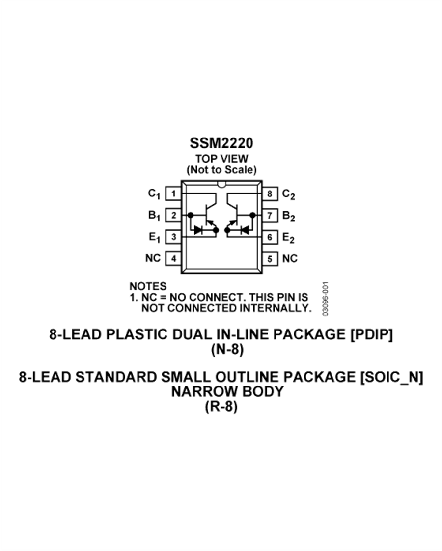 SSM2220提供8引腳塑封雙列(PDIP)和8引腳標(biāo)準(zhǔn)小型(SOIC)兩種封裝,可在?40°C至+85°C擴(kuò)展工業(yè)溫度范圍內(nèi)保證性能和特性。