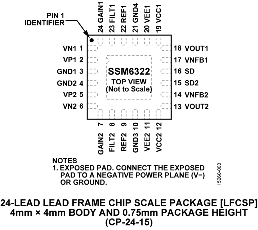 The SSM6322 is available in a 24-lead LFCSP package. The SSM6322 operates over the industrial temperature of ?40°C to +85°C.